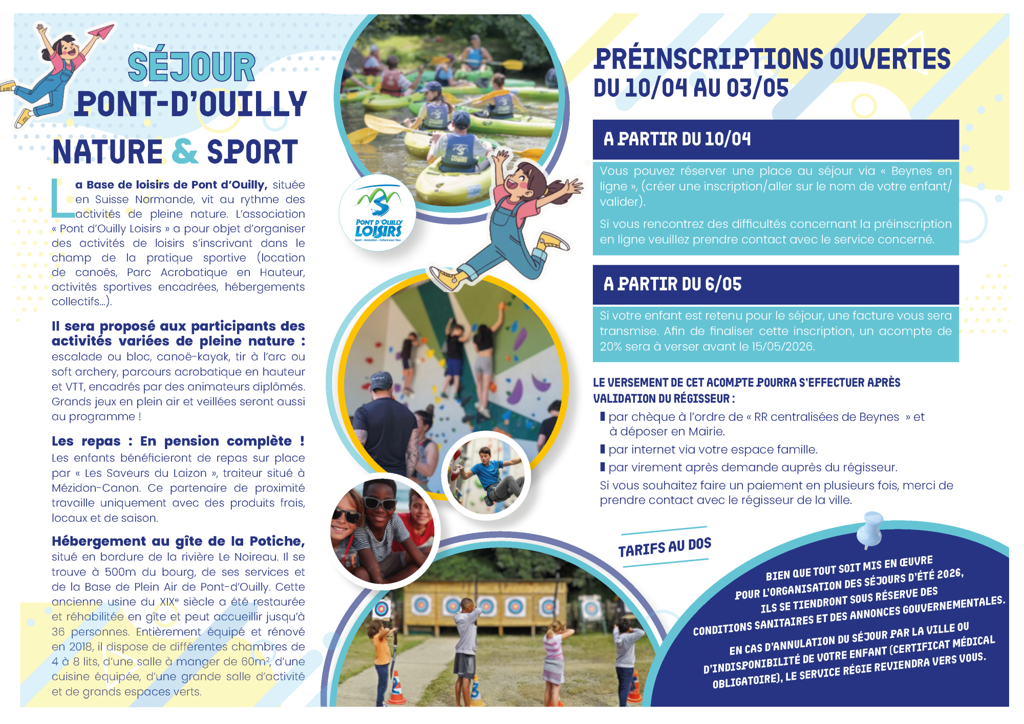 Vos enfants ont entre 7 et 17 ans ? Inscrivez-les du 10/04 au 03/05 sur Beynes en ligne pour qu'ils puissent participer à ce séjour en pleine nature entre copains !!